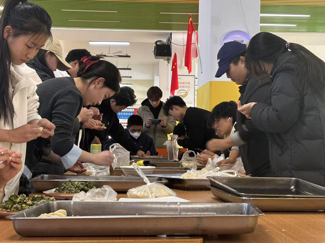 体验劳动的快乐,品味饺子的鲜美。餐饮中心工作人员为老师和同学们准备了新鲜的饺子皮和馅料,同学们亲手捏出一个个各具特色的饺子。不同地域的同学分享包饺子的技巧,交流吃饺子习俗。