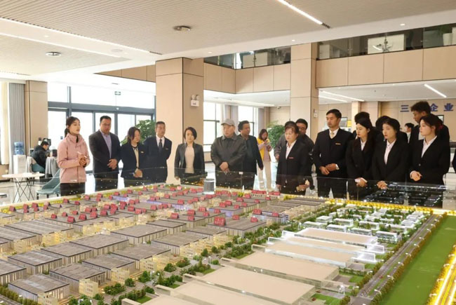 座谈会后,师生们实地参观了蓝田三元环保科技产业园。在产业园沙盘前,工作人员详细讲解了园区整体布局、入驻企业类型以及环保科技产业链的构建情况。