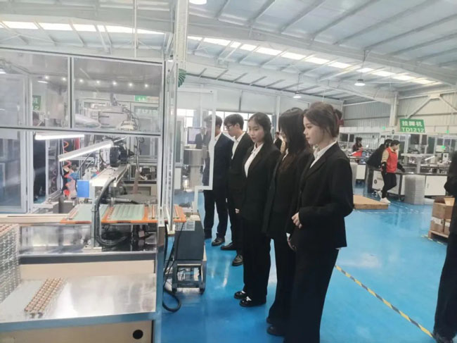在蓝田祥达电子有限公司,师生们参观了自动化生产线,深入了解电子元器件的精密制造流程。随后来到西安鹏昱华精密机械有限公司制造工厂,车间内机器轰鸣,数控机床高速运转,工人们专注地操作设备,呈现出一派热火朝天的生产景象。“课堂上学的数控编程知识在这里得到了直观呈现,车间里的先进设备让我更坚定了学好技术的决心!”机电工程学院电气自动化技术专业的刘亦轩激动地说。
