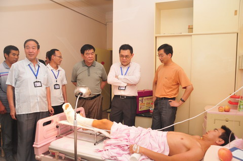 院领导关切地询问了三位同学的伤情,将慰问礼品亲手送到同学的手中,嘱咐他们要听从医生安排,好好养伤;有什么困难给学院说,学院尽力帮助解决,并祝愿他们早日康复。
