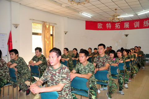 活动实行半军事化管理,以“合作、挑战、沟通”为主题,训练内容包括“履带战车”、“高空断桥”、“译码传递”、“扎筏抢渡”等项目。训练开始,教练按人数把大家分成两队,在规定时间内由各组成员选出组长、副组长、旗手和生活委员,制作自己的队旗、团队造型,选队名、队歌和队呼,最后两队分别取名“闪电队”和“战狼队”。按活动规则在接下来的活动中两队中出现任何的失误和犯规,队长必须代表全队接受教练的惩罚,失败的一队全队接受惩罚。教练说,这样的规则就是要让队员们意识到在一个团队中,任何人都不只代表自己,犯错不只由自己承担,而是由领导和整个团队承担犯错带来的后果。