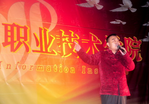 9月28日晚,应我院诚挚邀请,陕西省秦歌协会会长、中国秦歌第一人——十三狼来我院参加了“2010年庆国庆迎新生文艺晚会”,并倾情表演了秦歌曲目,受到广大师生的热烈欢迎。表演完毕,院长邢永华同志上台与十三狼亲切握手、合影,并向十三狼颁发了“聘请十三狼同志为我院客座教授”的聘书。