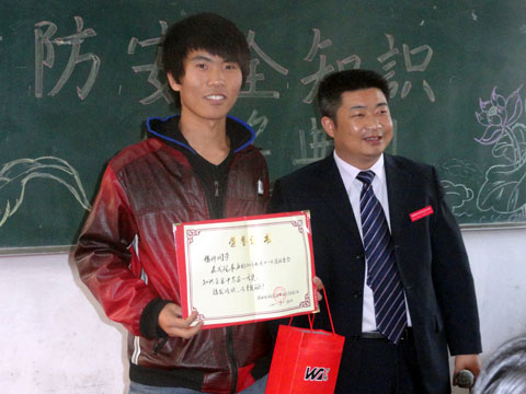11月9日下午举行了颁奖仪式。在颁奖仪式上,院理事会理事兼常务副院长穆耀辉同志做了重要讲话。首先,他对本次活动给予了充分的肯定,并强调消防知识的重要性;其次,分析了我院安全形势,提出了加强消防安全应注意的问题;再次,他要求获奖同学要起模范带头作用,自觉遵守安全规定,并当好消防知识的宣传员。