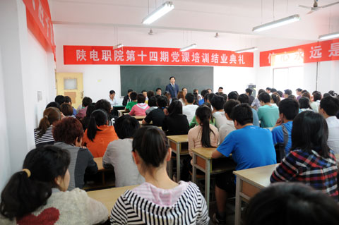 院党委书记史军胜同志作了讲话,他从刻苦学习,勇于实践,注意修养,加强锻炼,开拓创新等五个方面对学员提出了要求,希望大家把学习当成终身任务,把实践作为成才的重要途径,加强思想道德修养和党性锻炼,努力创新学习方法和工作思路,把党课培训结业作为新的起点,不断坚定理想信念,解决思想入党问题,处处起模范带头作用,争取早日实现加入党组织的愿望。史书记还要求各党支部要关心学生的健康成长,进一步加强党的基层组织建设。