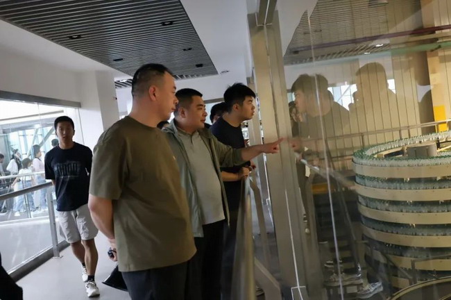 走进工厂车间,一条条智能化自动生产线高速运转。瓶装水经过洗瓶、灌装、封盖、贴标等工序,在机械臂的精准操控下完成无缝衔接,最终经传送带有序进入仓储环节。全程少有人工干预,却处处透着高效与精准,一派紧张有序的忙碌景象,让考察团成员不禁驻足赞叹。“从原料到成品的全流程智能化管理,不仅展现了企业顶尖的技术实力,更让我们看到了技能型人才施展才华的广阔空间。”学院招就处负责人感慨道。