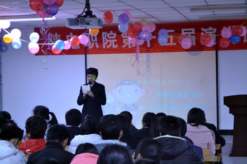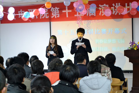 为了激发大学生勤奋学习、积极进取、全面发展、勇攀高峰的热情,进一步提高大家的语言表达能力和演讲能力,2012年11月30日下午16:30分,我院教务处、团委主办,院团委宣传部承办第十五届演讲比赛开幕式仪式在6-301多媒体教室隆重举行。
