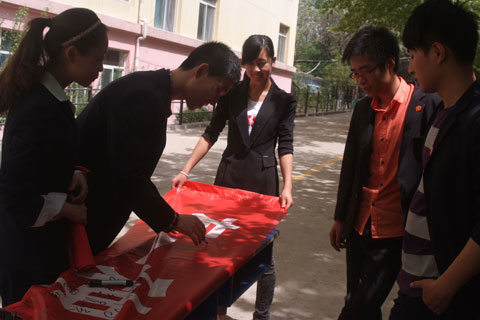 全院师生纷纷在横幅上签名。院工会主席杨瑞卿同志告诉同学们要从自身做起,从小事做起,发扬勤俭节约的光荣传统,养成勤俭节约的好习惯。要求学生干部要以身作则,用实际行动影响身边更多的人。