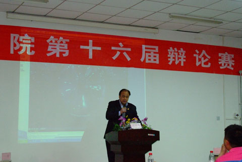 院学生处处长田志岗同志代表学院领导在开幕式上致辞。他指出当前正直我院开展“我的中国梦”主题教育活动及校园精神文明建设宣传的关键时期,学生处、团委、学生会学习部举办第十六届辩论赛,很及时,意义很重大。希望广大参赛同学能在本次辩论赛中取得优异的成绩,体会一份开心、培养一种能力、锻炼一种思维。学生代表王亚楠也代表学生发言,她希望参赛选手认真准备,力争取得优异的成绩,并为系部和班级增添荣誉。表示要以最大的努力为大家服务。祝愿我院第十六届辩论赛取得圆满成功!