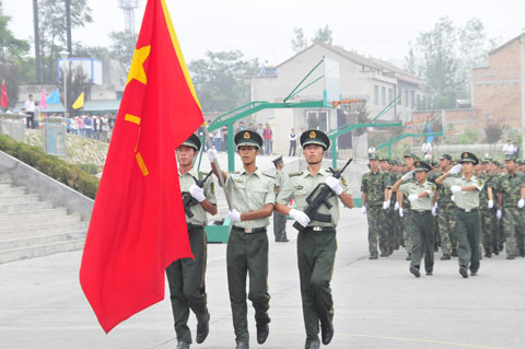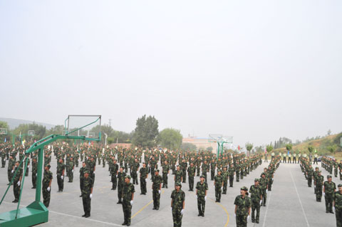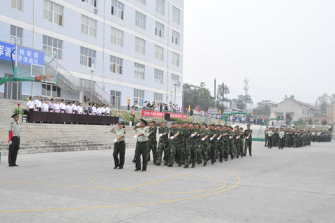 大会在庄严肃穆的国歌声中拉开了帷幕,伴随着嘹亮的解放军进行曲,常务院长穆耀辉在军训指挥长陪同下检阅了军训方队。紧接着,军姿威武的2013级新生,排着整齐的队列,迈着整齐的步伐,喊着响亮的口号,依次通过主席台,展现了他们在10天军训中所取得的可喜成果和当代大学生昂扬激情和青春风采。随后,参训同学进行了男子擒敌拳表演、女子花样队列表演、集体五步拳表演和集体洗衣舞表演,合唱了《士兵的桂冠》。