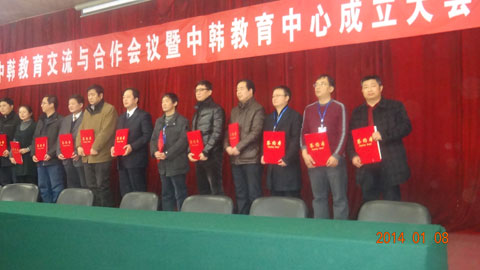 2014年1月8日,我院理事长穆耀辉及相关领导受邀参加了在西北大学举行的“中韩高新技术人才培养基地”合作院校签约及授牌仪式。出席仪式的有西北大学校长方光华,大韩民国驻西安总领事馆总领事全哉垣,陕西省教育厅、西安高新技术产业开发区管委会、三星西安工业园及韩国6所高校相关领导,陕西工业职业技术学院、杨陵职业技术学院、陕西职业技术学院、陕西电子信息职业技术学院等陕西12所高职院校的领导和相关代表100余人。