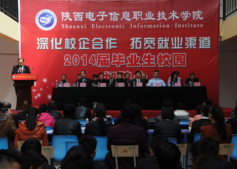 3月10日,我院2014届毕业生招聘会在6号教学楼大厅举行。院党委书记史军胜,院理事会理事长、常务副院长穆耀辉,副院长夏绘秦,学院各部门负责人,来自省内外企事业单位及全院师生参加了招聘会的开幕式。开幕式由学生处处长田志岗主持