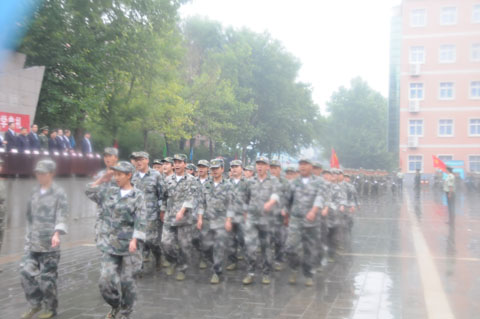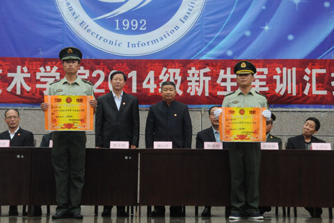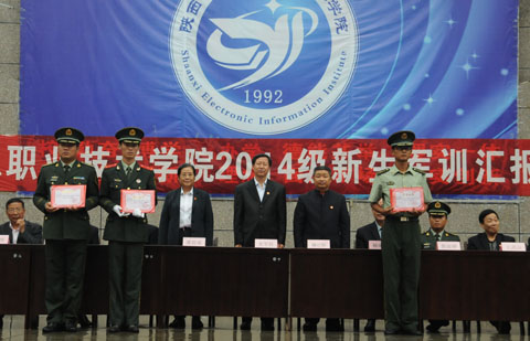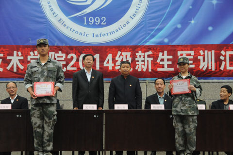 9月9日,我院2014级新生军训汇报表演在1号教学楼前广场举行。院党委书记史军胜,院理事会理事长、常务院长、党委副书记穆耀辉,副院长夏绘秦,院工会主席杨瑞卿及各部门负责人参加了大会。会议由学生处处长田志岗主持。