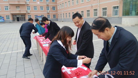 2014年12月1日是第27个“世界艾滋病日”。为进一步贯彻落实《国务院关于进一步加强艾滋病防治工作的通知》要求和《中国遏制与防治艾滋病“十二五”行动计划》,切实推进艾滋病防治工作,结合我院实际,院团委志愿者协会在教学一号楼广场举办了以“行动起来,向‘零’艾滋迈进”(英文主题Getting to Zero),副标题是“共抗艾滋,共担责任,共享未来”的主题签名活动。